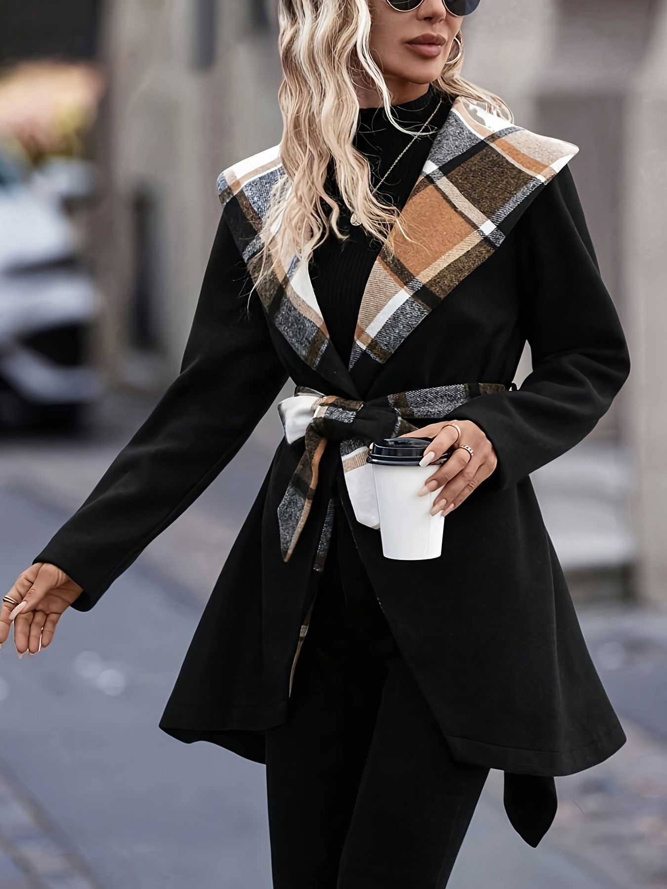 Women'S Elegant Mid-Length Winter Coat with High Neck and Plaid Patchwork Design - Warm, Lightweight, and Stylish for Office or Holiday Season, Warm Weather Jacket | Plaid Pattern Coat | Structured Coat