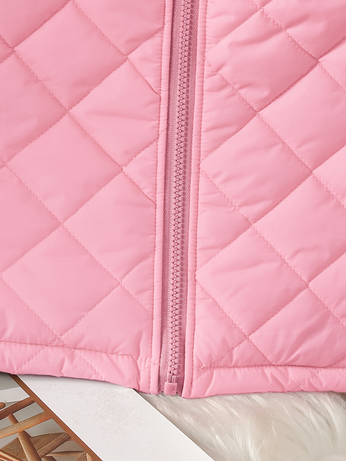 Women's Sleeveless Vest with Zipper Closure - Vibrant Pink Winter Warmth, Stand Collar & Pocket Design, Casual Elegant Solid Color Non-Stretch Fabric for Fall Winter Outdoor Beach Outings, Machine Washable Layering Piece (No Belt, Standard Length)