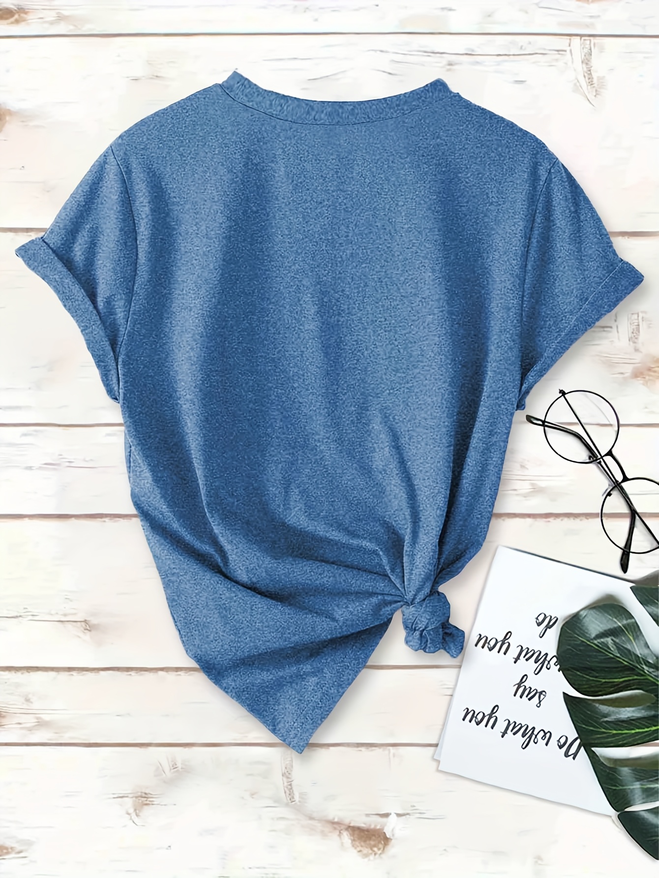 [Cherry Print T-Shirt] Women's Casual Summer V-Neck T-Shirt with Red Cherry Print and Happy Ankle-Day Applique Detail, Short Sleeve Graphic Tee