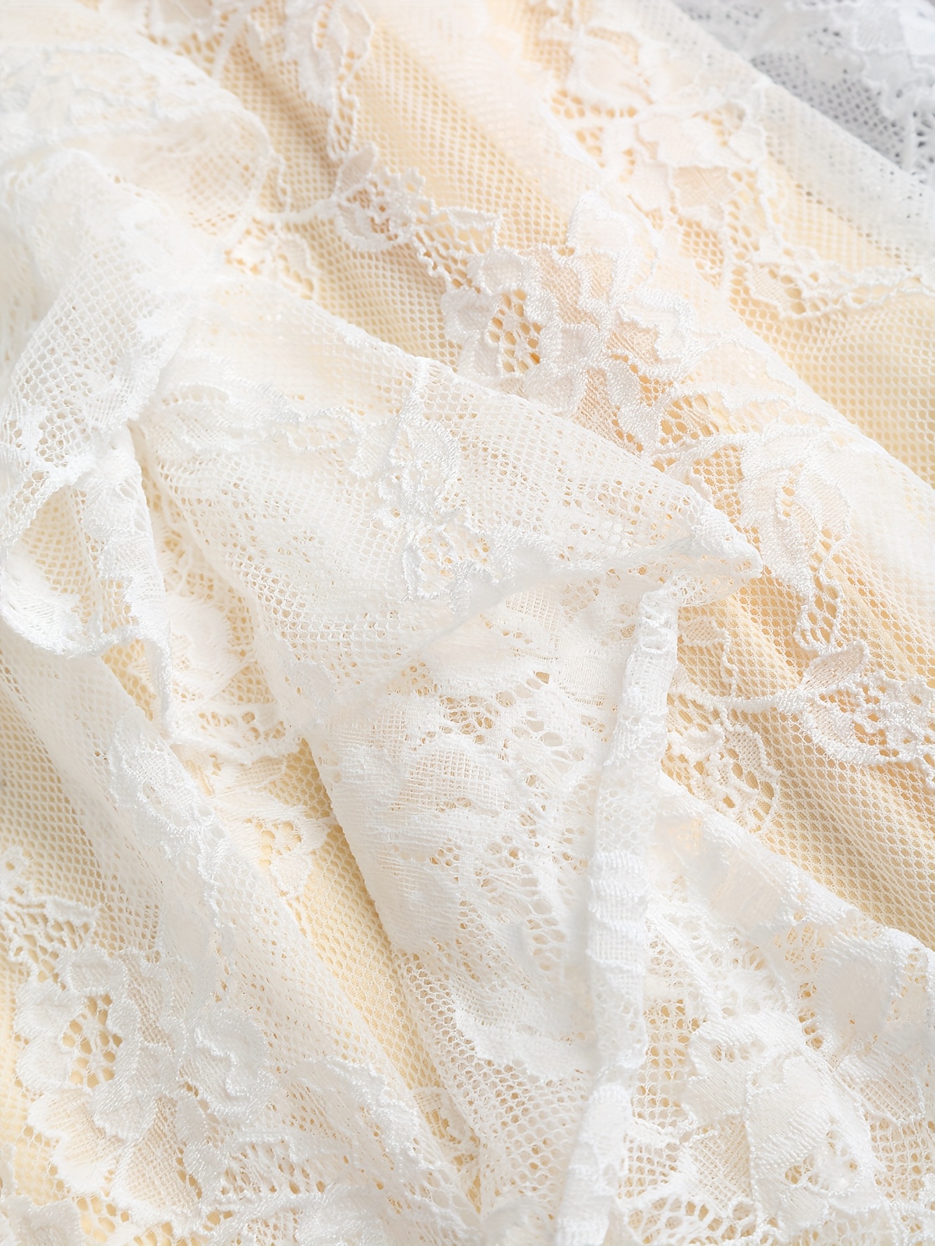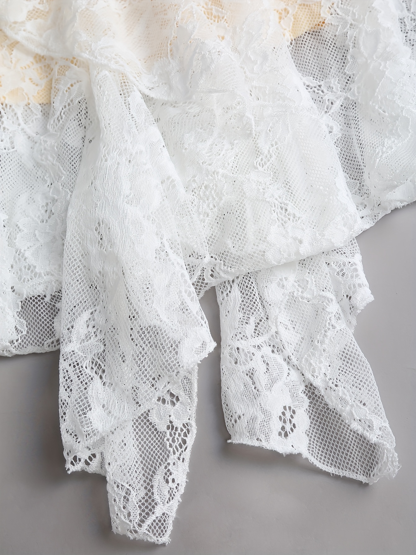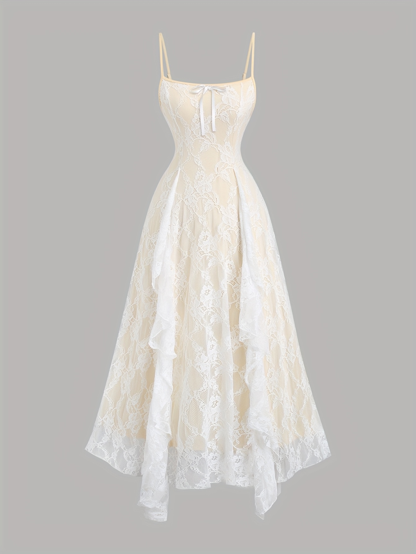 [Elegant Lace Dress] Sleeveless Elegant Off-Shoulder Lace Dress | Ruffle Detail, Bow Accent, Flowing Design, Perfect for Summer Events