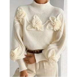 Elegant High-Neck Sweater with 3D Floral Embellishments – Soft, Plush, and Comfortable Fit, Perfect for Fall/Winter, Ideal for Creating a Serene Atmosphere, Casual Wear | Elegant Highneck | Construction, Sweater Dress