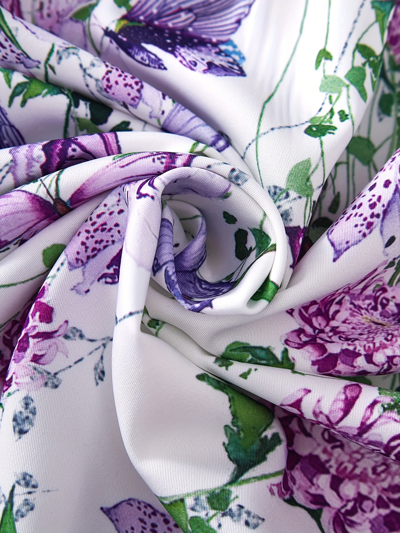 [Elegant Floral Dress] Elegant Floral A-Line Dress | Butterfly Accents, Adjustable Cross Straps, Ruched Waist, Perfect for Beach, Vacation, and Party Wear