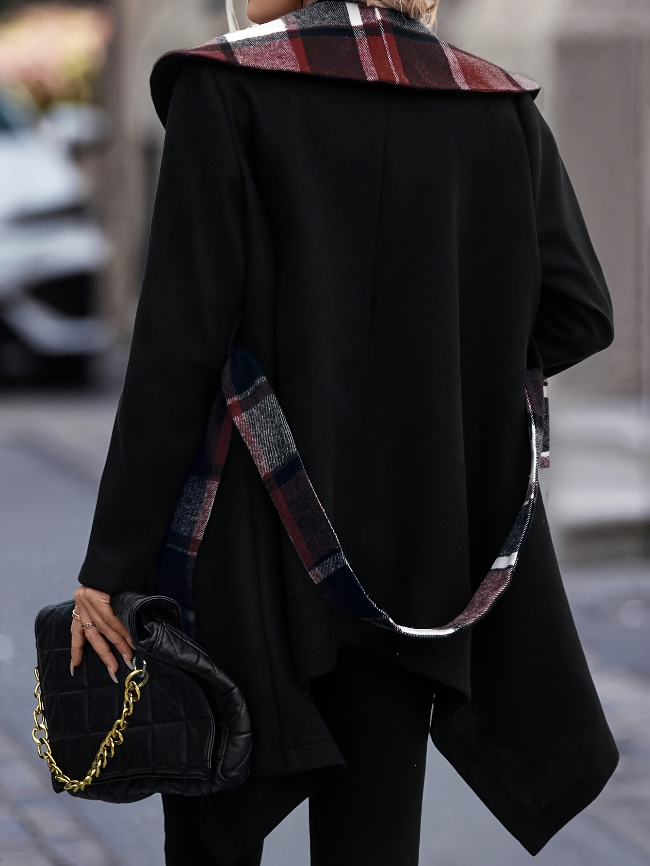 Women'S Elegant Mid-Length Winter Coat with High Neck and Plaid Patchwork Design - Warm, Lightweight, and Stylish for Office or Holiday Season, Warm Weather Jacket | Plaid Pattern Coat | Structured Coat